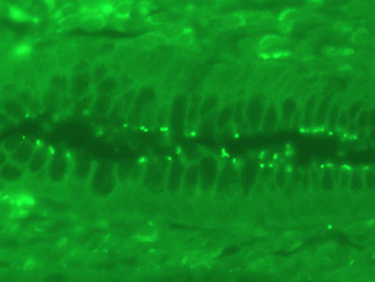 Z-Stackimage; Stomach lining, Total bacteria FITC, probably Helicobacter pylori.